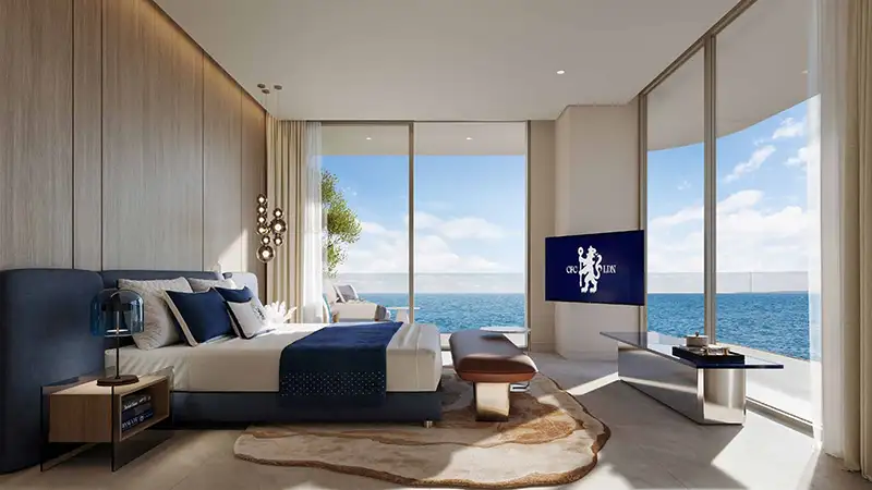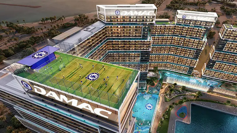 Chelsea Residences by Damac Properties is a first-of-its-kind football-themed branded architectural epitome at Dubai Maritime City with 1, 2 & 3-bedroom waterfront apartments. The evolving architectural panorama has now entered a new long-term goal in partnership with Chelsea Football Club (Chelsea FC), appointing Damac as the official Property Development Partner. The leading high-rise designed 06 tower collection is elegantly set within the lower podium levels, serving modern luxury with its top-notch leisure and attraction, setting a new benchmark in history laced with sweeping views and amenities crafted for champions. The region will now experience unprecedented lifestyle changes as it welcomes the Dubai Reef project and advanced public beach project developments in the vicinity.